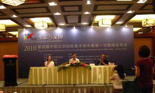 2009年6月11日下午两点,第四届北京国际美术双年展第一次新闻发布会在北京国际饭店会议中心2号厅召开。发布会由中国美协副秘书长、北京双年展策委会召集人陶勤主持;展览总策划中国文联副主席、中国美协副主席冯远出席并答记者问;展览总策划中国美协常务副主席吴长江出席并讲话,包括孟加拉、智利、捷克、希腊、意大利、科威特、墨西哥、秘鲁、菲律宾、卡塔尔、斯洛文尼亚、乌克兰等在内的十几个国家驻华使馆的文化参赞或文化专员参加了新闻发布会,美国ABC电视台、西班牙埃菲通讯社、葡萄牙卢萨社、中国新华社、中国中央电视台、北京电视台、中国国际广播电台、香港凤凰卫视、人民网、中国新闻网、人民日报、光明日报、中国日报、中国改革报、中国书画报、文艺报、中国文化报、北京青年报、北京晚报、北京晨报、美术观察、中国美术馆、中国环境、环境保护等近百家中外媒体与会。会上播放了展览宣传片;与会领导及策划委员回答了记者提问,并发放了第四届北京双年展宣传册等。
